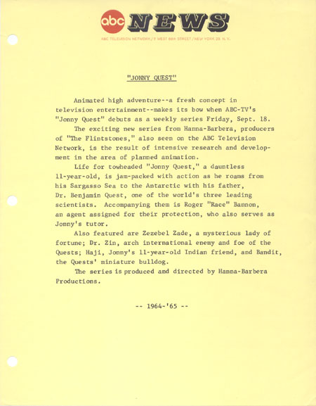 press release photos were issued to promote the Jonny Quest series in syndication in 1986.